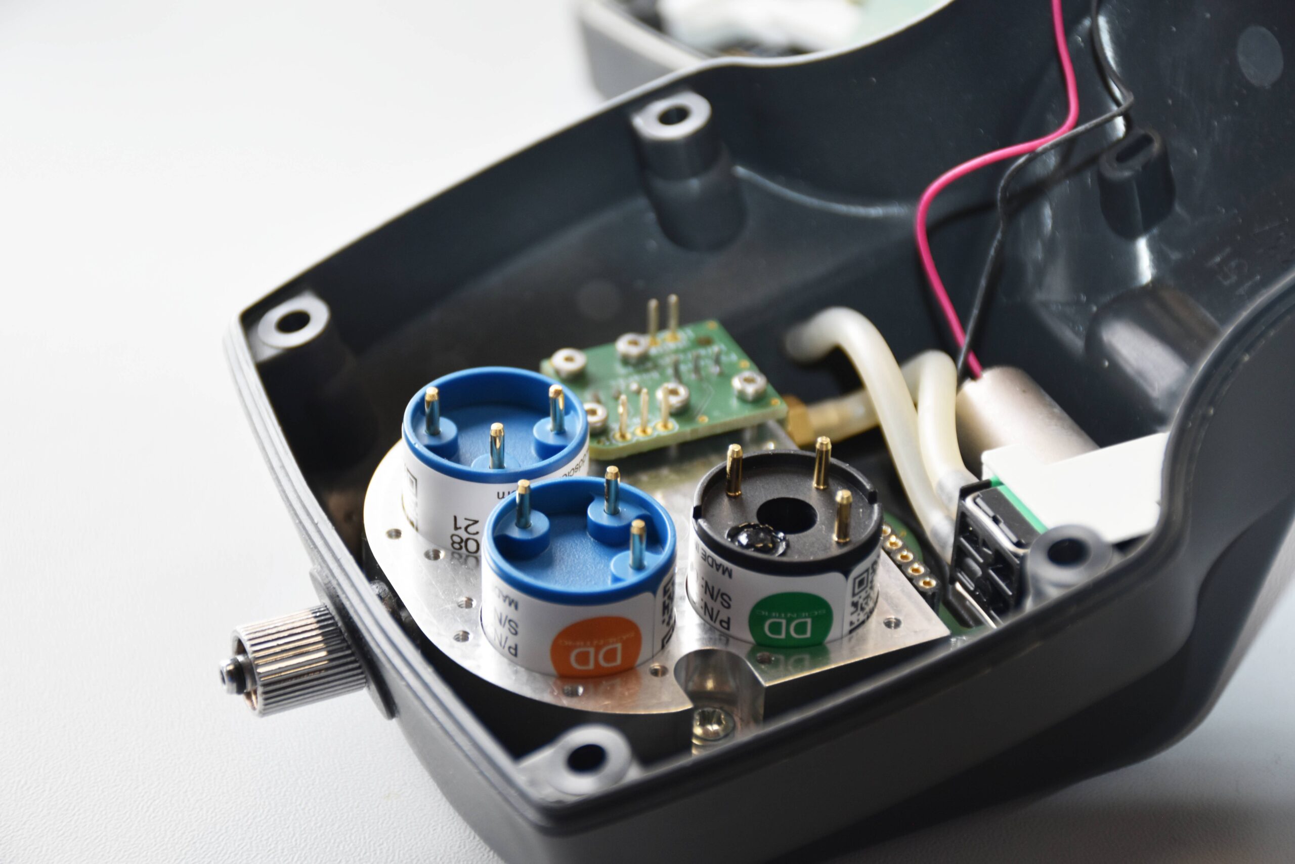 Metal oxide gas sensors or semiconductor gas sensors consist of a heated semiconducting material. When a gas interacts with this material the resitance of the material changes. Commercial metal oxide gas sensors are available from various companies at low cost. They are often used in gas warners and air quality measurements.