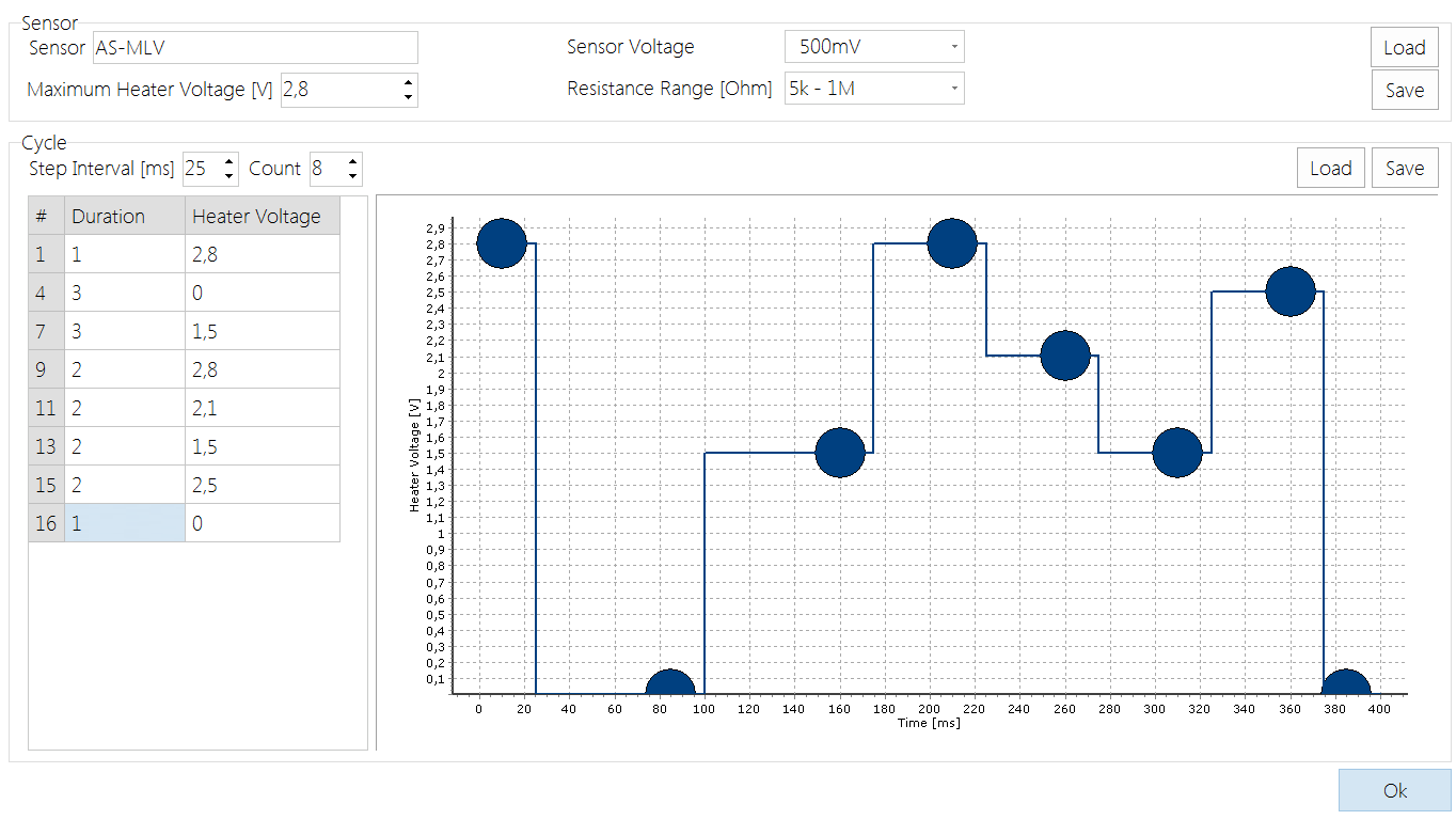 - heater voltage range 0 .. 5.6V